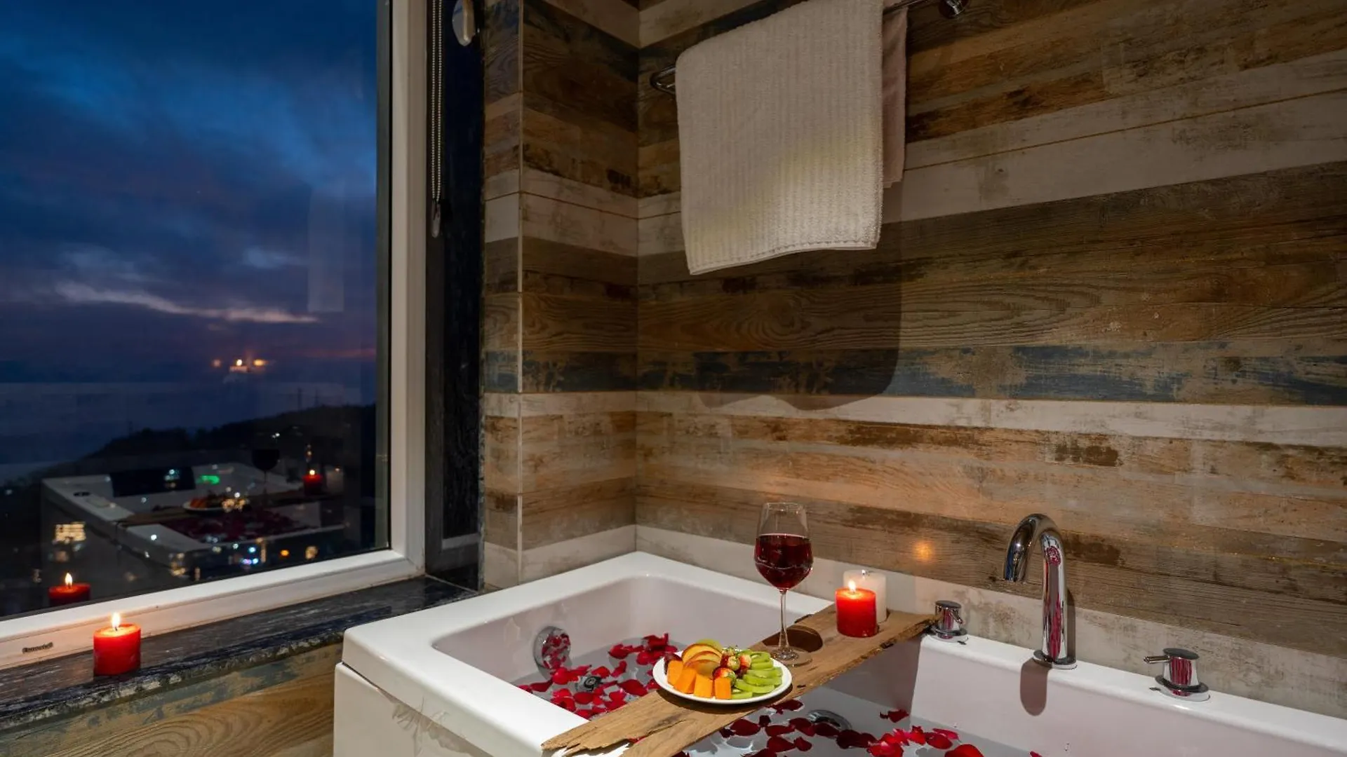 Guests can dine at the pizzeria Om Cafe located 2 km away.
